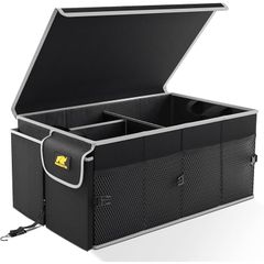 【ZI-ZI】車用収納ボックス トランクオーガナイザー 大容量 折りたたみ可能 蓋付き トランク ラゲッジルーム 収納 車用 収納ケース アルミハンドル付 黒 (ブラック, 72L) 0