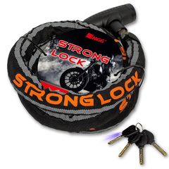 ENGG バイクロック スチールリンクロック 直径24mmx1800mm【ストロングロックVer2.0】 ワイヤーロック 二重防塵 ウェーブキー4本付き LEDライト付 1800mm 頑丈 盗難防止 オートバイ 原付 チェーンロック 0