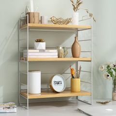 【即日発送】北欧 机上ラック 収納棚 テーブルラック本 棚 文房具 収納ラック 飾り シェルフ 小物置き 上置棚 整理 ラック 組立簡単 デスク収納 (棚板3枚 本棚 ウッド色棚板+白色フレーム) オープンラック