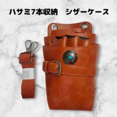 ハサミ7本収納 シザーケース ベルト 美容師 理容師 PUレザー 茶