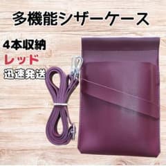 ハサミ4本収納 多機能シザーケース 背面収納 PUレザー 美容師 理容師 赤