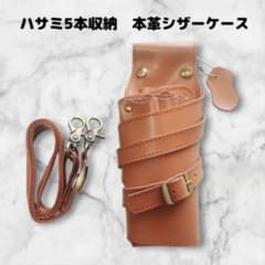 本革 ハサミ5本収納 シザーケース 美容師 理容師 ベルト巻き 茶