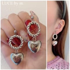 879 ツイストシルバーフープ ぷっくりシルバーハート 大人可愛い お洒落