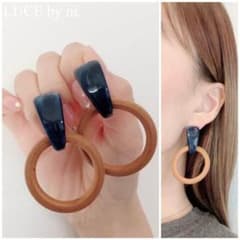 786 ウッドフープ ネイビーフック ピアス イヤリンお洒落