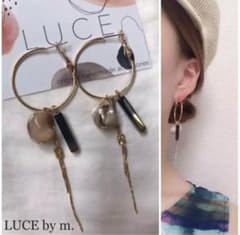 157 ゴールド ウェーブ リング べっこう ピンク マーブル フープ ピアス