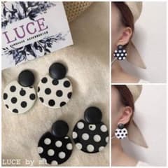 139フェイクレザー ドット カボション モノトーン 白黒 ステンレスピアス