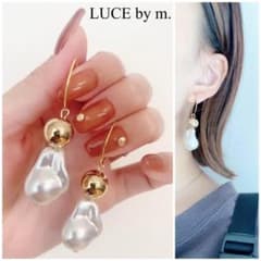 1009 ゴールドボール 変形パール フープピアス お洒落 大人可愛い