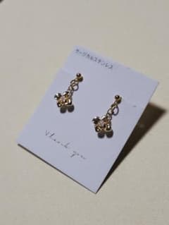 量産型イヤリング イヤーカフ くまの子とゆらゆらハート silver