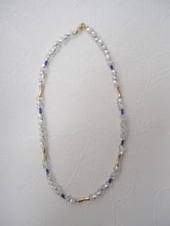 #07. クリア×ブルー×ゴールド ビーズネックレス