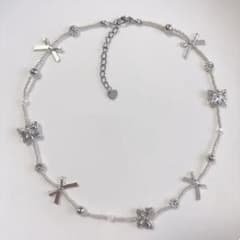 E ビーズネックレス ハンドメイド 韓国風 蝶々 リボン