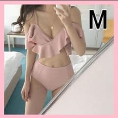 水着 Mサイズ オフショル フリル フェミニン 体型カバー