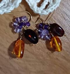 528/14kgfバルティックアンバーとアメジストのチャーム