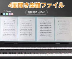 楽譜ファイル 楽譜 ファイル 書き込める 見開き4面 楽譜入れ 書きこめる 書ける A4 6ページ 譜面ファイル 楽譜用 音符 ピアノ 発表会 吹奏楽 軽音 バンド 演奏 部活 ノート 黒 ブラック