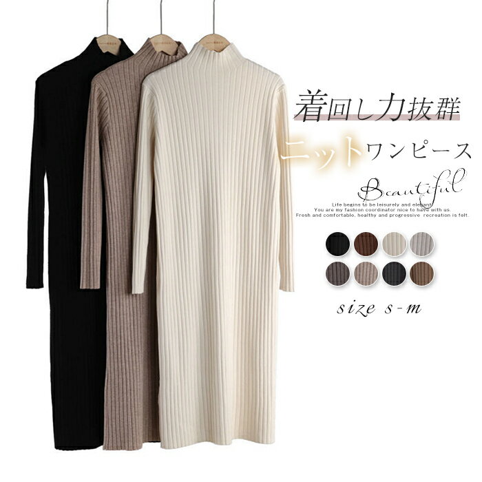 ニット ワンピース レディース ハイネック ワンピース 長袖 無地 秋 冬 ロング ニット ワンピース ロング丈 長袖 ワンピース インナー ワンピース プルオーバー きれいめ 大人 カジュアル ゆったり リブニット ワンピース 通勤 オフィス 着痩せ インナー 30代 40代 50代