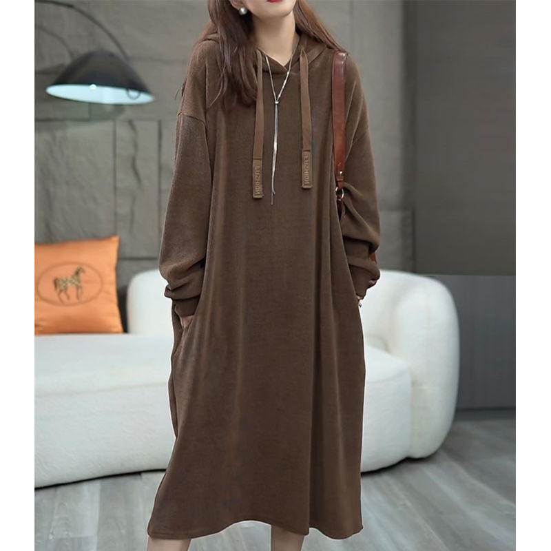 ワンピース コーデュロイ 大きいサイズ フードワンピース フードワンピ フード付き レディース ゆったり ロング レディース 無地 シンプル ロング丈 ワンピ 秋 冬 ミモレ丈 可愛い LWEA169(L-6XL)