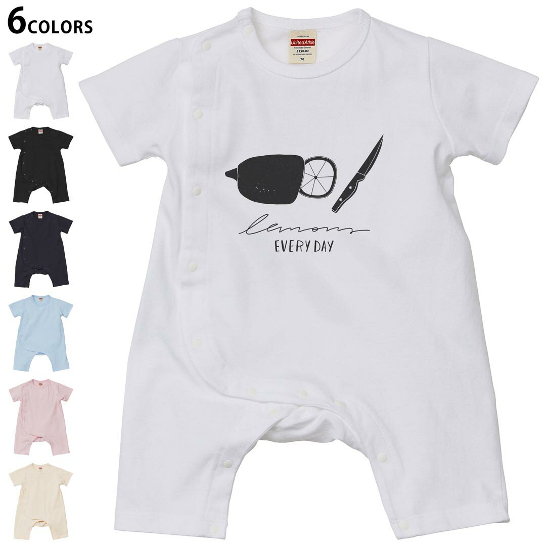 選べる6カラー ロンパース カバーオール 赤ちゃん 半袖 デザイン 70cm 80cm rompers ベビー 新生児 キッズ 70サイズ 80サイズ ギフト マタニティ 妊婦 出産祝い プレママ ティーシャツ T shirt 015742 レモン 食べ物 野菜 モノクロ