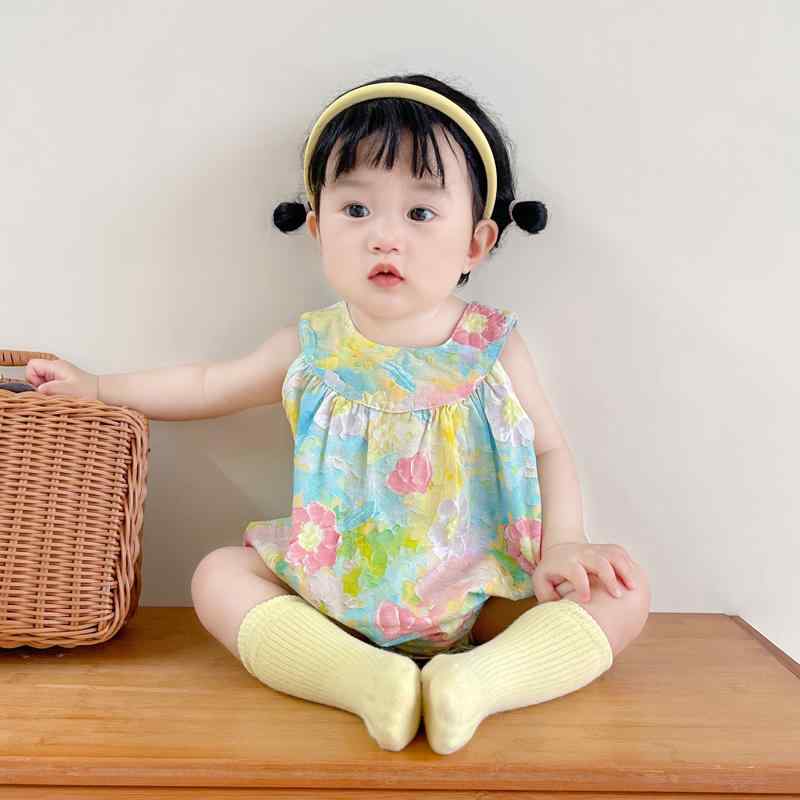 ベビー 服 夏服 スイート プリンセス 花柄 ジャンプ スーツ 女の子 赤ちゃん サマー かわいい トライアングル 夏 ノースリーブ