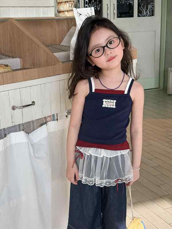 キッズ 女の子 セットアップ ノースリーブ デニムパンツ 上下セット 子供服 かわいい おしゃれ 薄手 夏