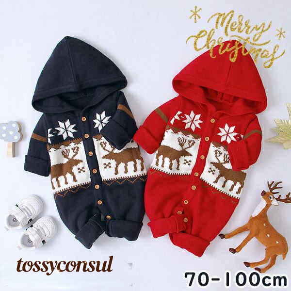クリスマス ロンパース フード付き ベビー服 長袖 ニット 赤ちゃん 新生児 カバーオール コスチューム 男の子 女の子 キッズ ロンパース 子供服 出産祝い用 子供 サンタ 衣装 ベビー 秋冬物 コスプレ 衣装 新生活
