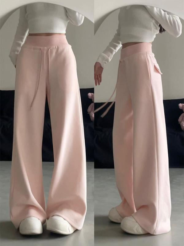 パンツ レディース 春秋 ワイドレッグパンツ 高腰 伸縮性 ゆったり ストレート スウェットパンツ カジュアル 普段使い かわいい ピンク系