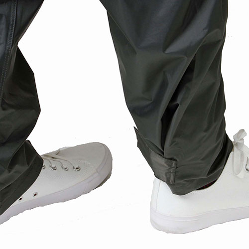 長さ調節が3段階あるレインパンツ・消耗の激しいパンツの単品販売。 ・ウエスト調整紐入り。 ・太もも横の調節ボタンでかがむことなく簡単に裾丈を最大12cm短の調節が可能。 ・パンツの裾幅のマジックテープ調整により雨水の跳ね上がりによる浸水を防ぐ。 使用シーン ・デリバリー ・配達 ・ゴルフスタッフ ・農作業 ・警備 ・通勤、通学・カラー : ブラック ・素材 表地 ナイロン100%/PVCラミネート 裏地 ポリエステルメッシュ ・適応胴囲78〜88cm ・適応股下73.5cm