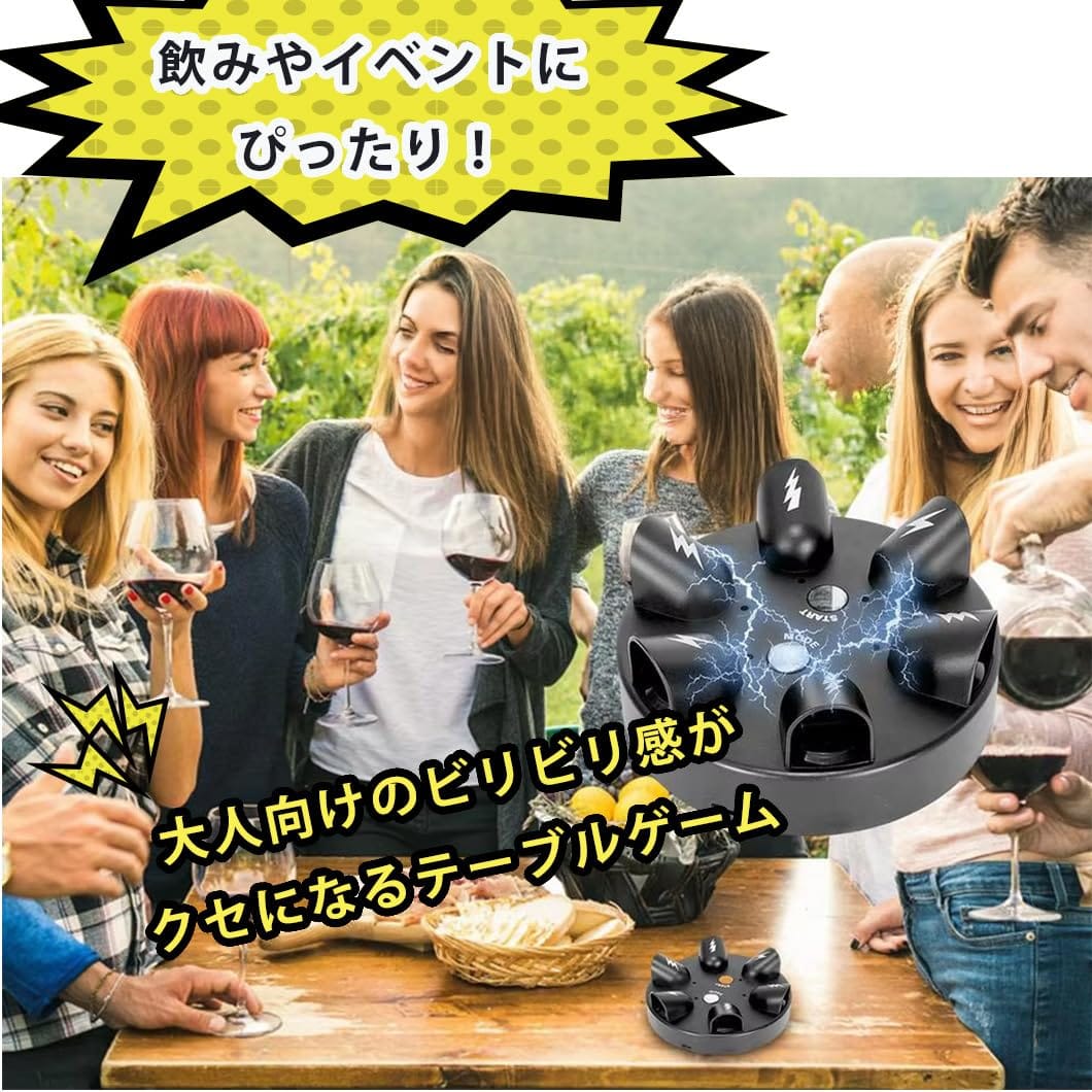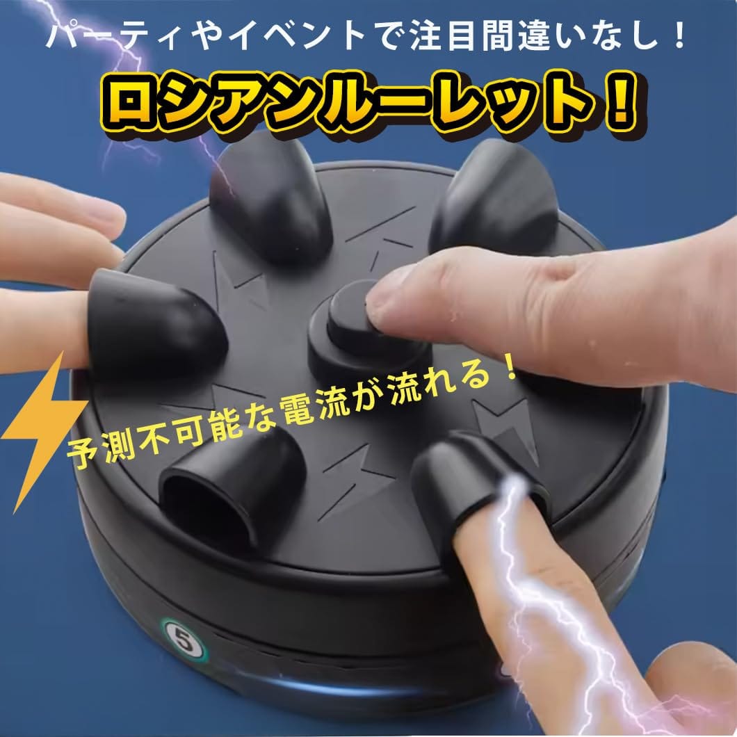 パーティーやイベントで注目間違いなし!予測不可能な電流が流れるロシアンルーレット!飲みやイベントにぴったり!大人向けのビリビリ感がクセになるテーブルゲーム。指を入れるだけでできるから誰とでも盛り上がれる!誰があたるか、ドキドキしながら電流が流れる瞬間を体験。電池式で手軽にどこでも使える!友達や家族とも楽しめる卓上ゲーム。 パーティーやイベントで注目間違いなし!予測不可能な電流が流れるロシアンルーレット! 飲みやイベントにぴったり!大人向けのビリビリ感がクセになるテーブルゲーム。 指を入れるだけでできるから誰とでも盛り上がれる! 誰があたるか、ドキドキしながら電流が流れる瞬間を体験。 電池式で手軽にどこでも使える!友達や家族とも楽しめる卓上ゲーム。