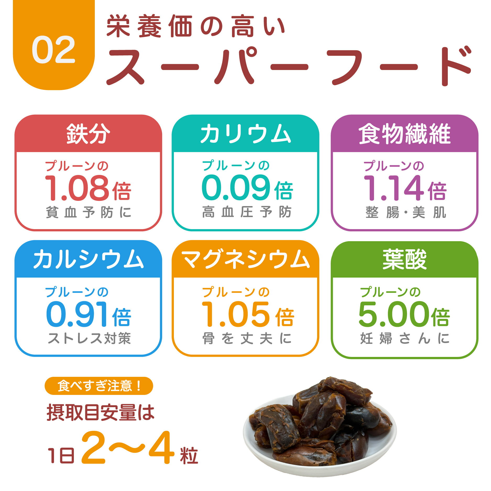 ※一袋のみゆうパケット対応。 複数ご購入の場合は、宅配便送料がかかります。 砂糖、着色料、香料、保存料不使用! 低GIのスーパーフード「デーツ」。含まれる栄養素は、鉄分、カルシウム、カリウム、マグネシウム、リン、亜鉛などのミネラル類、食物繊維、またビタミンB、ビタミンE、葉酸やナイアシン、パントテン酸などのビタミン群、ポリフェノールなど。