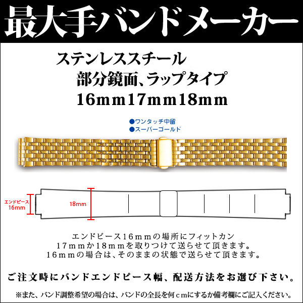腕時計 ベルト 時計 バンド ステンレス メタルベルト BAMBI バンビ ゴールド 16mm 17mm 18mm 金属 オスカー メタル ブレス 交換 替えベルト OSBE4111G