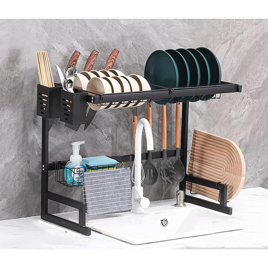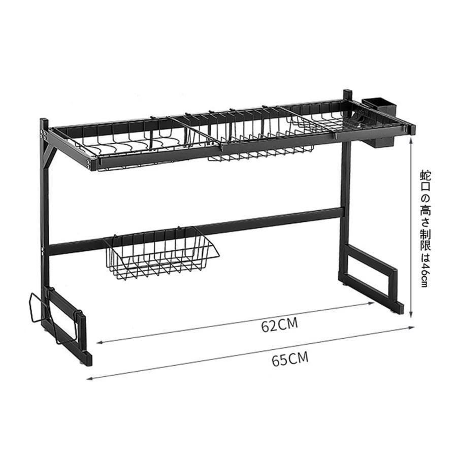 この食器乾燥ラックは、付属品が揃ったシンクサイズの収納ラックです。 すべての部品は簡単に調整、取り外し、洗浄できます。 製品パラメータは 65cm(W) x 33cm(D) x 52cm(H) で、10 分以内に簡単に設置できます。特徴 食器棚をシンクの上に設置すれば、滴り落ちる水が自然にシンクに流れ込み、食器が汚れずに衛生的です。 各セクションは取り外し可能で、掃除の日に簡単に掃除できます。耐久性 シンクの水切りは高品質の素材で作られており、表面はベーキングニスで塗装されており、防錆、防水、耐久性があります。 さらに、頑丈なL字型構造により、安定性が高く、転倒や揺れを防ぎます。組み立てとメンテナンス 食器乾燥ラックのすべての部品は取り外し可能で、組み立てと掃除が簡単です。 また、固定寸法は伸縮可能な寸法よりも強度があります。収納と整理 このシンク上の食器乾燥ラックは、すべての食器や調理器具を整理し、清潔で乾燥した状態に保つ便利なキッチンツールです。 12個のフックを装備し、さまざまなアイテムを収納できます。