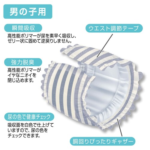 ペティオ (Petio) 犬用オムツ フレス たっぷり吸収するエチケットパンツ 男の子用 L12枚 マーキングやそそうの対策に。 商品紹介 たっぷり吸収するエチケットパンツ。吸収量だけではなく、吸収スピードも早く逆戻りもしにくいのでさらさら感が長続きします。 使用方法 (1)柄のついていない白い吸収体の面を上にしてお腹の下側にもっていきます。 ※前後はありませんので、どちらでもお使いいただけます。(2)愛犬の局部が吸収体の中心にくるように当て、背中側でしっかり留めてください。 ※テープは付け直しができます。 ※テープを留める際は、毛をはさまないように注意してください。(3)外側のギャザーをしっかりと外に出し、局部をカバーしていることを確認してください。