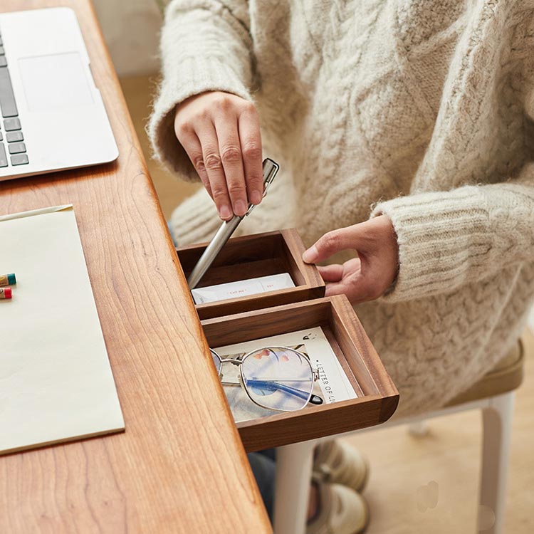 温かみのある天然木製の後付け引出し!テーブル下のスペースを有効活用♪テーブルの上に散らかりがちな小物類をすっきりまとめておける、スライド収納タイプ。粘着シールで貼るだけの簡単仕様!オフィス用品、カトラリーなどのお食事グッズ、文房具、お薬や印鑑など、頻繁に出し入れする小物類の収納にぴったり!デスクはもちろんダイニングテーブルやキッチン、クローゼットなどのスキマを活かして収納スペースが拡張できます。スリムな設計なので座って作業をするときにも邪魔にならず、さっと引き出してすぐに取り出せるので作業効率も大幅にアップ。ナチュラルな風合いが、どんなお部屋にも馴染みます。 サイズ 単点 サイズについての説明 S:19.5*7cm L:21.5*11cm XL:23.5*17.3cm ※サイズ表の実寸法は商品によって1-2cm程度の誤差がある場合がございます。 素材 竹 木 色 ナチュラル(竹製)/S ナチュラル(竹製)/L ナチュラル(竹製)/XL ブラウン(ウォールナット材)/S ブラウン(ウォールナット材)/L 備考