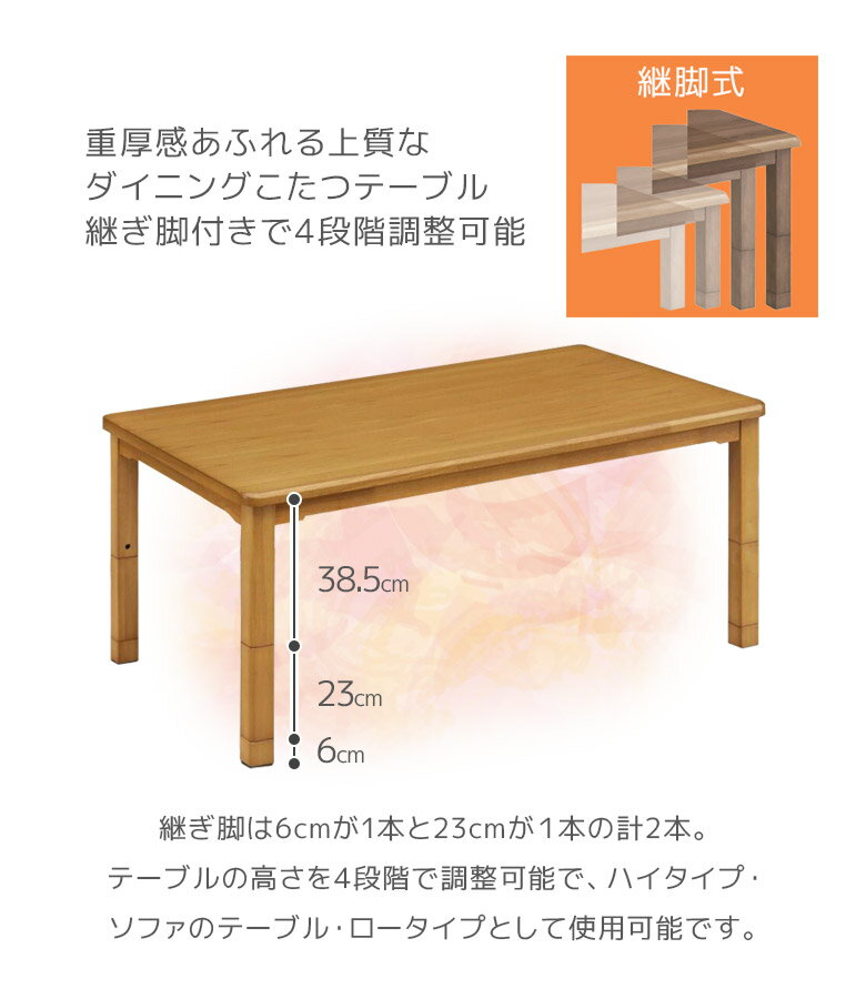■送料送料無料(一部地域を除く)※北海道・東北別途送料がかかります。※沖縄・離島送料は、別途お見積りとなります。大型商品は配送の都合上 ご注文承れない場合がございます。予めご了承下さい。別途送料につきましてご質問等がございましたら、お気軽にお問い合わせ下さい。※配送料について※一部配送地域により中継料などが発生し、別途追加送料をお願いする場合がございます。何卒ご了承ください。ダイニングこたつテーブル ハイタイプ ダイニングこたつセット 幅150cm 6点セット こたつ布団 4人 こたつ 暖卓 こたつテーブル こたつセット コタツセット こたつふとん タモ ブラウン 炬燵 高さ調節可能 暖房機器 ハロゲンヒーター