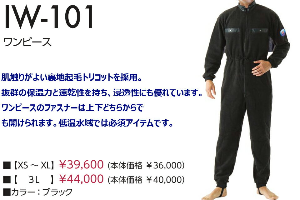 ZERO IW-101 ワンピース ドライスーツ インナー ゼロ ダイビングプロフェッショナル 保温インナー 起毛トリコット ドライ アンダー インナースーツ