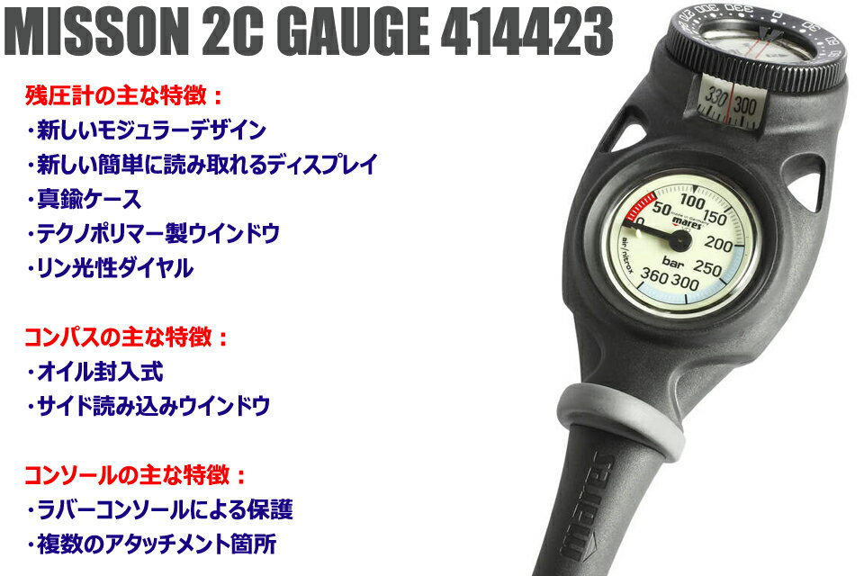 MARES マレス mission2C ミッション 2C 414423 ダイビング残圧計 コンパス 2ゲージ ゲージ コンソールゲージ 残量計方位磁針 計器