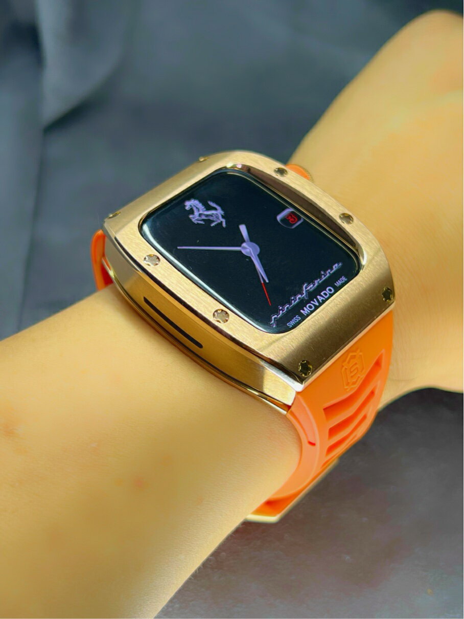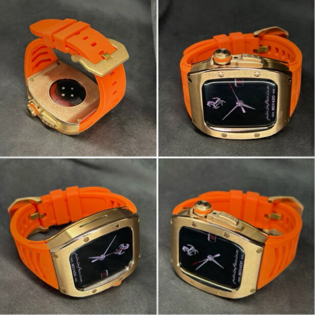 アップルウォッチ ローズ ステンレス ケース ラバーベルト 45mm 44mm シリーズ9 シリーズ8 シリーズ7 シリーズ6対応 動画 シリーズ7 applewatch アップルウォッチ用 シリーズ 5 シリーズ4 SE SE2