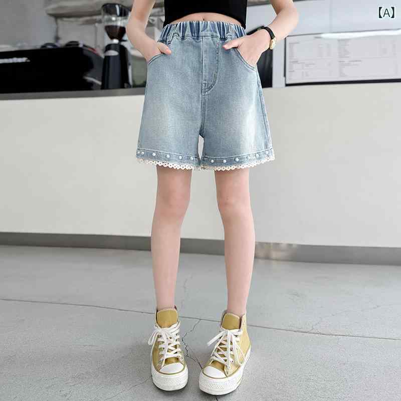 子供服 デニム ショートパンツ 女の子 夏 B類 中大童 薄手 通気性 花柄レース ホットパンツ 120cm 130cm 140cm 150cm 160cm 170cm 普段着