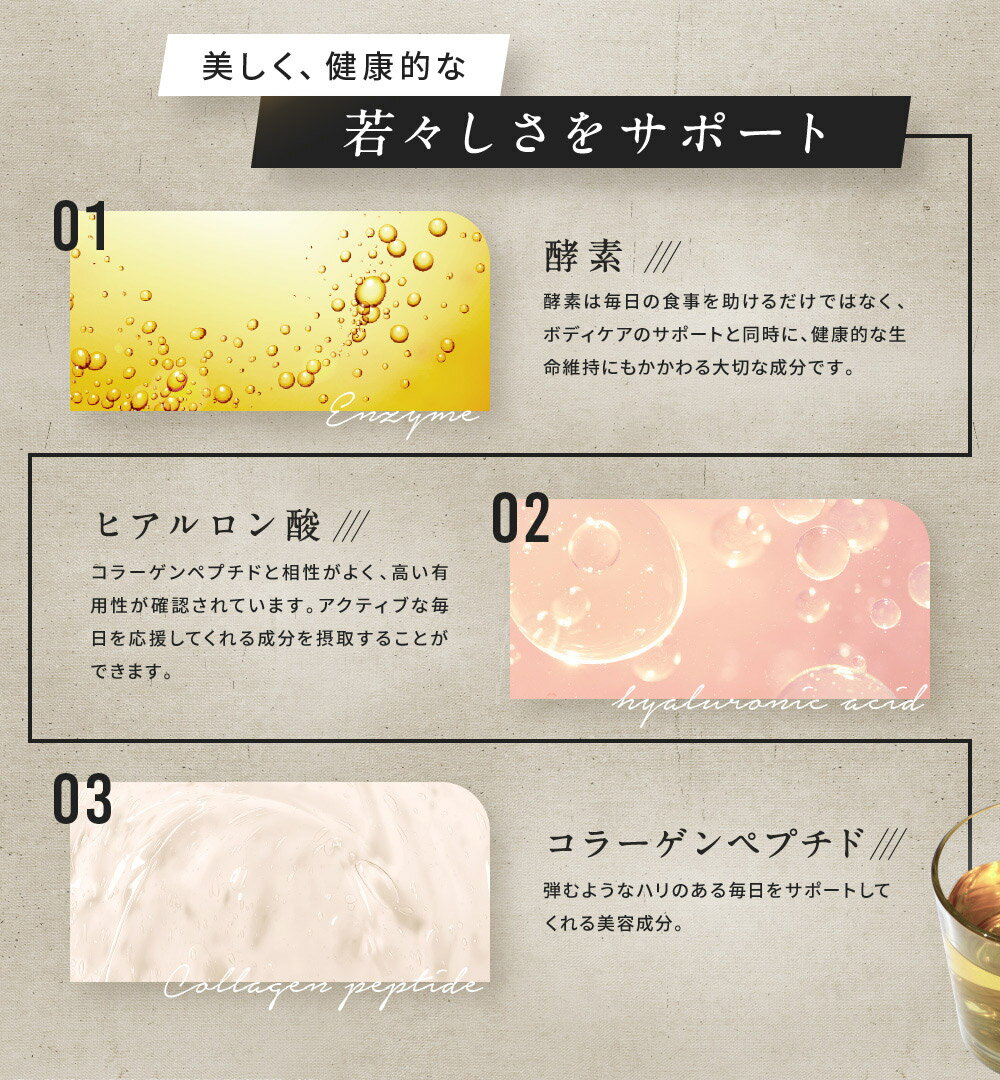商品名 IZM PEACH TASTE(イズム ピーチ テイスト) 商品説明 大人からお子様まで、美味しいから続けられる! SNSでも話題の酵素ドリンク! IZM PEACH TASTE(イズム ピーチ テイスト)は、瀬戸内産にこだわった75種類の野菜や果物を3年6ヶ月発酵させた植物発酵エキス配合の、大人からお子様まで美味しくいただける、ピーチ味の酵素ドリンクです。 その他、1日に必要なビタミン(vb1.vb2.vb6.vb12.vbc配合)その他、フィッシュコラーゲンペプチド、ヒアルロン酸、プラセンタ、アサイーを配合した美と健康をサポートするピーチフレーバーのドリンクです。 甘酸っぱく優しい飲み心地で美味しいと好評いただいております。 5倍を目安に水・炭酸水・牛乳等様々な飲料と併せてお召し上がりください。 また、ヨーグルト・アイスクリームなどに添えても相性◎ ダイエットやスポーツ後のリカバリーにお薦めです。 オーガニックな酵素飲料を1杯あたりの目安80円程度と低価格でお試しいただけます。 大人からお子様まで美味しくお飲み頂ける酵素ドリンクです。 (防腐剤・保存料は一切使用しておりません。) 酵素のチカラと飲みやすいピーチ味が融合したオシャレな酵素ドリンクとして、InstagramなどのSNSや某美容サイトでも話題の商品です。 腸活にもおすすめです! 特徴 ◎ピーチ味の飲みやすい酵素ドリンク 瀬戸内産の素材にこだわり、育成にこだわった野菜や果物75種類を3年半発酵させた、植物発酵エキス配合のピーチ味の美味しい酵素ドリンクです。 女性に評判のコラーゲンペプチド・ヒアルロン酸・プラセンタエキス配合。エネルギー生成にビタミン各種、配合しています。 ◎手軽に続けやすい美味しさを追求 酵素ドリンクってどんなイメージがありますか?一度飲みにくさを感じてしまうと毎日の習慣として続けるのは難しいものです。「美味しいから無理なく手軽に続けやすい。」「これなら子供も飲みやすい。」そんな仕上がりを追求し、IZMシリーズはつくられています。 ◎アルミパックECO仕様 飲み始めから飲み終わった後までを考慮したアルミパック仕様です。冷蔵庫での保管やゴミ捨てもラクに取り扱えます。 お召し上がり方 1日あたり40~80mlを目安に、水、白湯