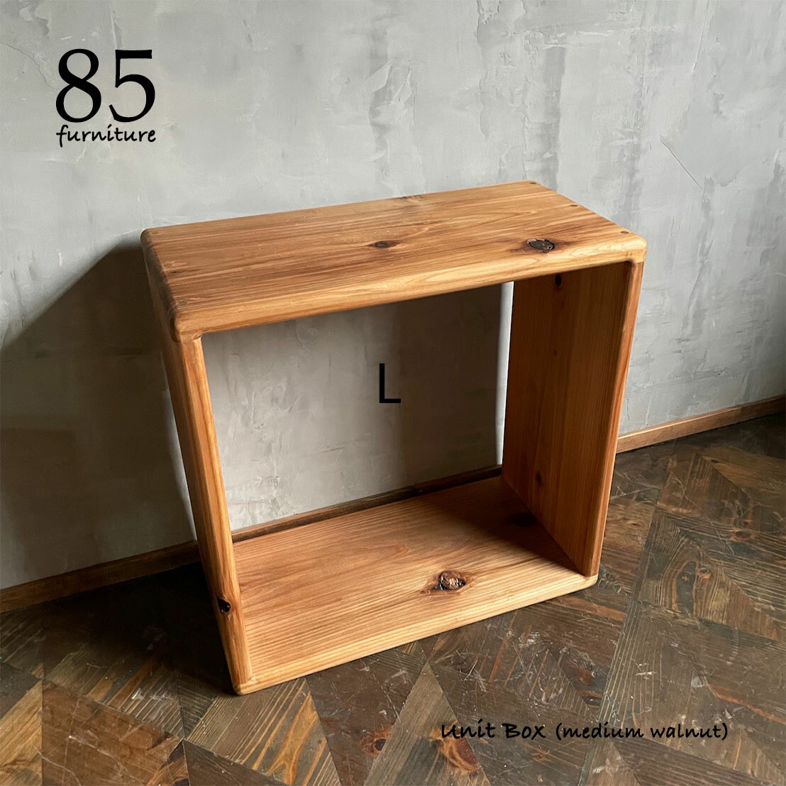 ご覧頂きありがとうございます。 ※こちらのページはLサイズ(¥12,000)の販売ページです。 ★受注製作です。 発送までの目安は受注状況により変動します。 3種類の大きさのモジュールの組み合わせを楽しんでいただける、ユニットボックスセットです。 24mm厚の国産杉無垢材を使用。 幅が、Lサイズ2個=Mサイズ3個=Sサイズ4個になる様に設計しました。 ※フルセット(¥57,400)の販売ページは https://item.rakuten.co.jp/auc-85tools/85f-000127/ です。 きっちり並べて置くも良し ランダムに置くも良し 組み合わせは無限大。 あなただけの空間を作ってください。 ★サイズ 奥行24cmはSML共通 Lサイズ ¥12,000 外寸 幅48cm 高さ48cm 内寸 幅43.2cm 高さ43.2cm 重さ 約4kg さらに大型のモノを収納可能。 個数が多ければ多いほどお得に! +1個 +9,400円 +2個 +18,400円 +3個 +27,000円