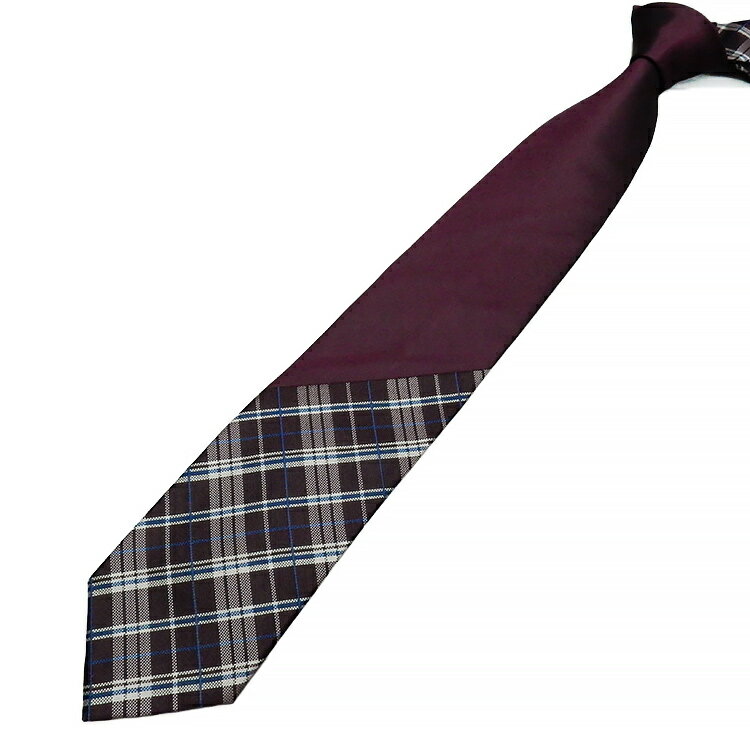 西陣織 オンリーワン ネクタイ 濃紫 無地×チェック 切替 シルク100% 日本縫製 メール便送料無料 NJ-ONLY10