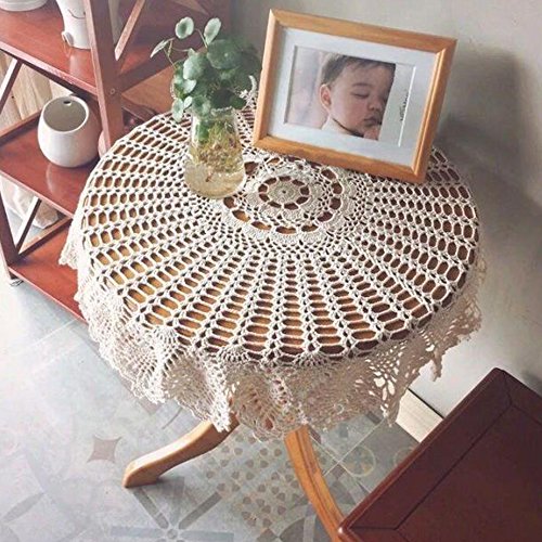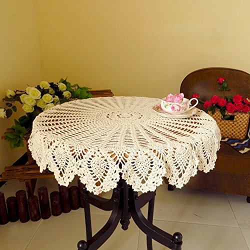 yazi 手編み テーブルクロス 手作り テーブルカバー アンティーク調 デスクマット 丸テーブル おしゃれ テーブルカバー インテリア クラシカル花柄 レース ベージュ 円型 直径90cm洗って使える