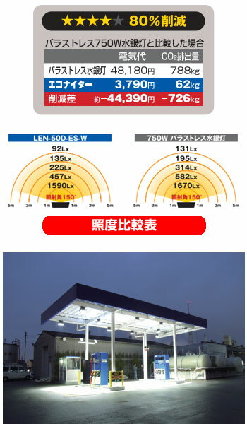 LED投光器 ( 省エネ LED エコ ナイター ) 50W [LED-50D-ES-W(LED50W)]【キーワード: 送料無料 照明 地震対策 ライト 防雨型 屋外型 球寿命 夜間作業用 照明器具 移動 投光器 防災セット 送料込 最安値に挑戦 】