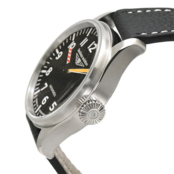 【商品説明】 バウハウス アビエーションの名の通り、バウハウス理念「Form follows function」を基に、過度な装飾を排除したシンプルで機能的な美しさを象徴する”洗練されたデザイン”の腕時計に仕上がりました。シンプルを追求するほど本当に難しく、デザイン性が要求されると言われています。 ドイツを代表する飛行機Junkers(ユンカース)のコックピットにある計器をイメージした独特な針が特徴のモデル。デイトカレンダーを搭載した腕時計好きのためとも言える自動巻き腕時計。裏ブタがスケルトンになっておりムーブメントの動きが良く見えます。ブラックの文字盤に映えるホワイト、レッド、イエローのインデックスと長短針がアクセントになってモダンらしさを引き立てています。シンプルで飽きの来ないバウハウス・デザイン。 視認性が良く、オン/オフどちらもで着用出来るメンズ・アナログパイロットウォッチです。