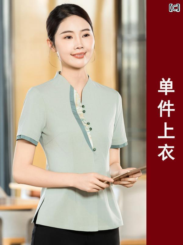 作業着 ウェイター スタッフ ホテルの ウェイターの 作業着 半袖 チャイナ風 高級 ケータリング 火 鍋 レストランの 夏 スーツ 女性