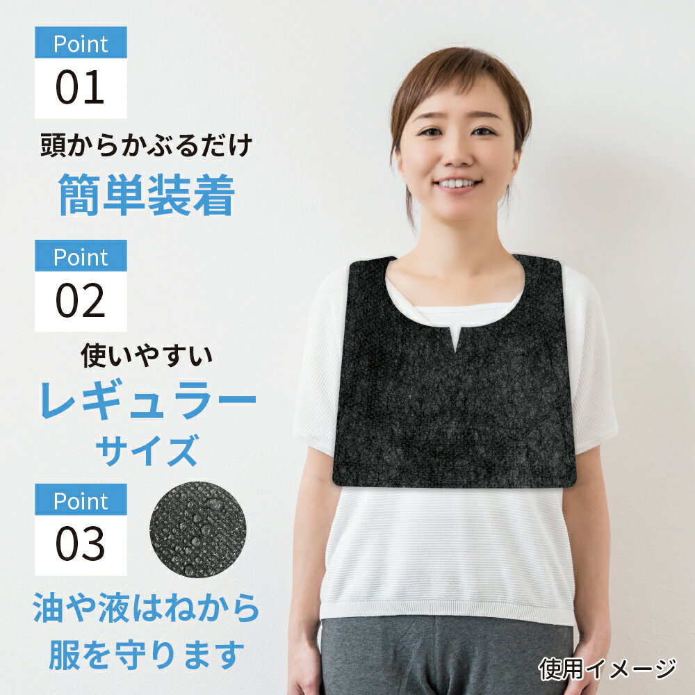 【100枚入×2袋セット】不織布お食事エプロン ブラック ショートサイズ 100枚入〈送料無料〉【ビホウ 美保 食事用エプロン 使い捨て 黒 子ども用 大人用 介護 飲食店 業務用 汚れ防止 H530×W400 200枚 衛生用品 】