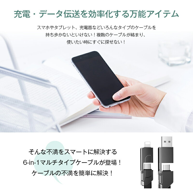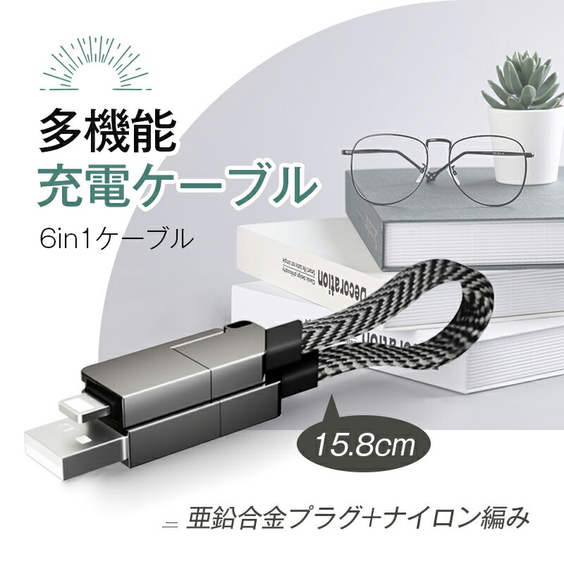 6in1 USBケーブル マルチケーブル iPhone17ケーブル 充電コード iPhone16 17Air 17 Pro 17ProMax 超便利 データ伝送 高速充電 480Mbps 高速データ通信 USB Type-C USB-A Micro-USB iPhone端子用 PD 65W対応 長さ15.8cm 絡まない 磁気吸着 【PL保険加入済み製品・安心】