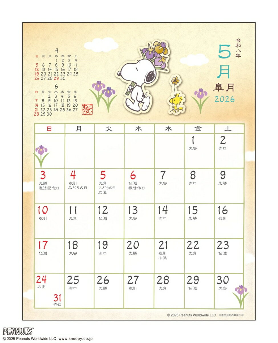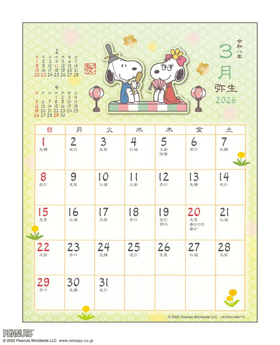 ○アートプリントジャパン2026 26CL カレンダー 和風スケジュール PEANUTS 26CL/112 ワフウスケジュール/PEANUTS 発行年月:2025年09月 予約締切日:2025年08月20日 ISBN:4995027175250 本 カレンダー・手帳・家計簿 カレンダー その他