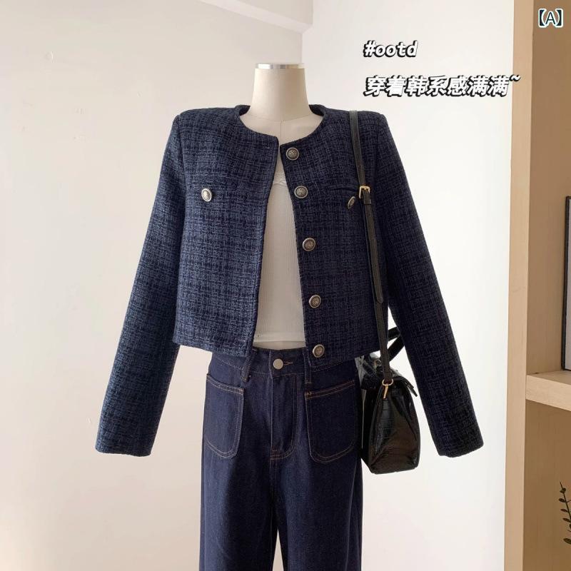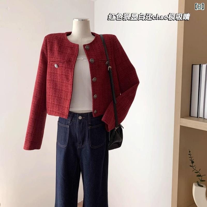 ジャケット レディース ショート丈 秋物 シングルブレスト レトロ 豪華感 カジュアル ゆったり 長袖 トップス 紺色 赤