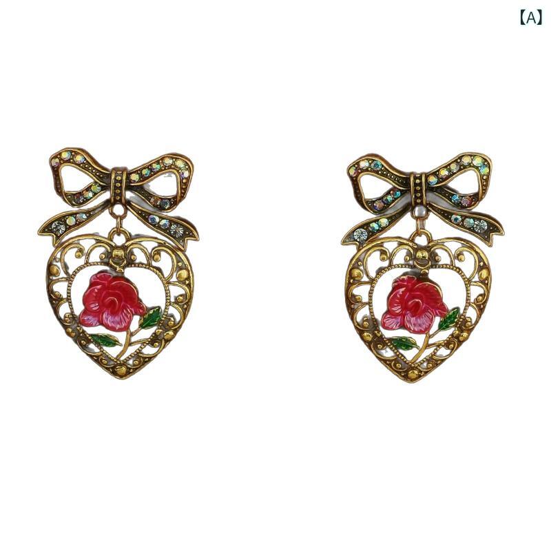 イヤリング レディース ヴィンテージ風 ジルコニア 蝶 ちょうちょ 透かし彫り 花柄 ハート ピンク ローズ かわいい レトロ