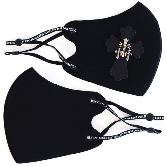 当店の洋服は細身シルエットになります。インポート商品など、サイズ交換・返品などが出来ない商品も数多くありますので、採寸表を必ず確認のうえ、ご注文いただきますよう、お願いいたします。[CROWS 30 SELECT]PUレザー×クロスデザインマスク ブラック FREEサイズ ファッションのワンポイントに使えるファッションマスク! PUレザーにクロスチャームを3つ施した、 無骨な男鉄板デザイン! 手洗いで洗っていただいて、 複数回使っていただけます、 個性的スタイル、大人スタイルにオススメ! ※海外商品です、仕様前に必ず手洗いをお願いします。 素材アイスシルク(ナイロン・ポリウレタン) 関連商品