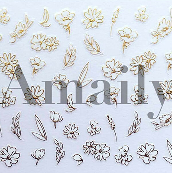 アメイリー ネイルシール No.3-24 フラワースケッチ(白G) 【ネイル アート ステッカー メッセージ ワード フォント】
